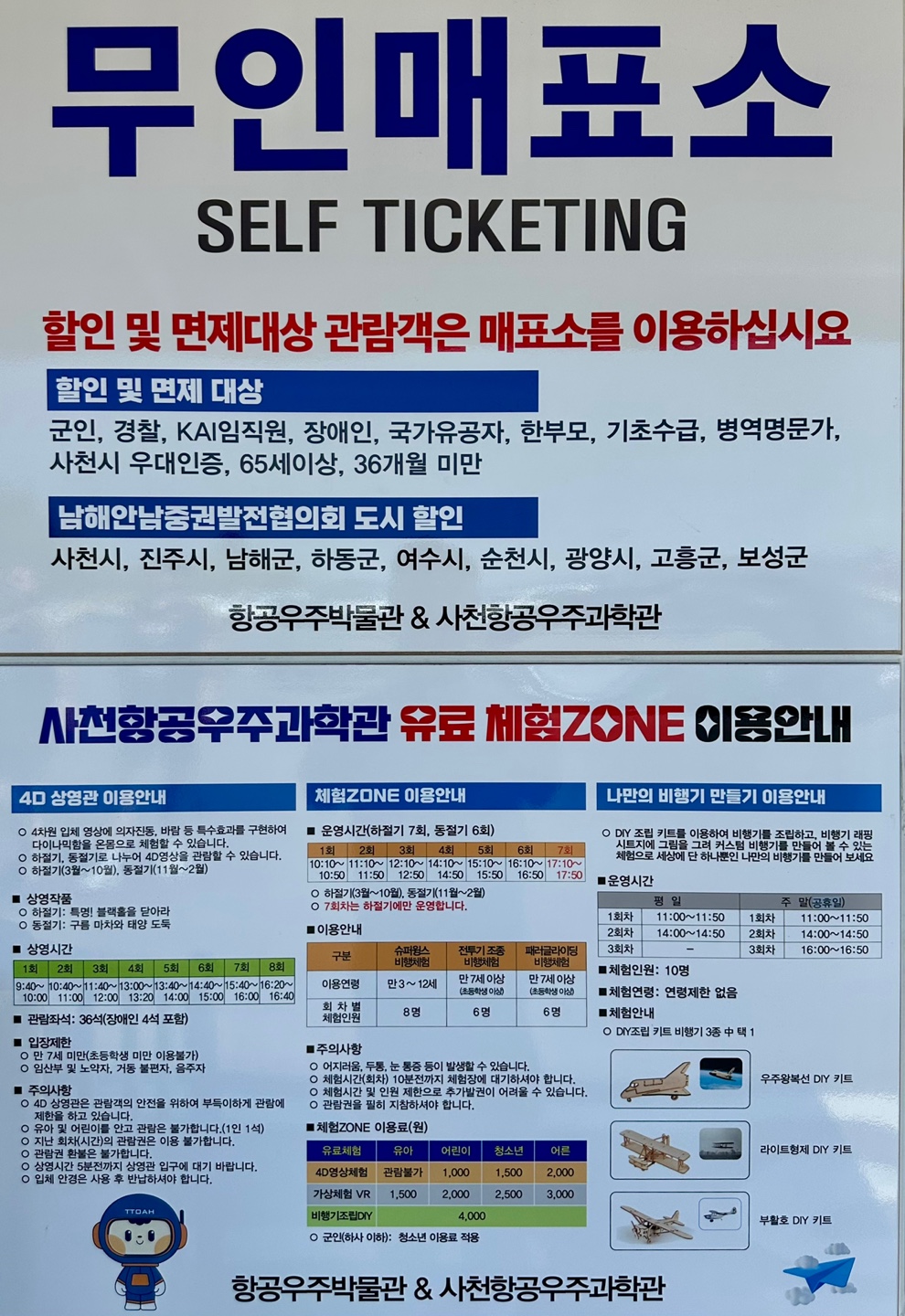 사천항공우주박물관과 과학관은 통합권으로 운영돼요. 입장권 한 장으로 두 곳 모두 관람 가능합니다.