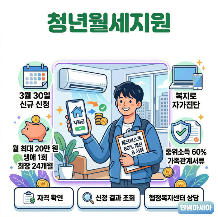월세 내는 청년들에게는 청년월세지원이 진짜 체감 큰 정책이에요. 그런데 막상 검색해보면 자격확인, 복지로 자가진단, 중위소득 60%, 제출서류 같은 말이 한꺼번에 쏟아져서 헷갈리죠.